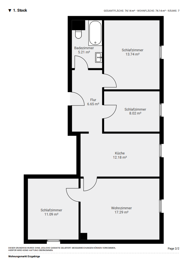 Flächenmaße usw. sind ggf. selbstständig am Objekt zu entnehmen.