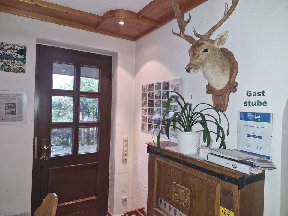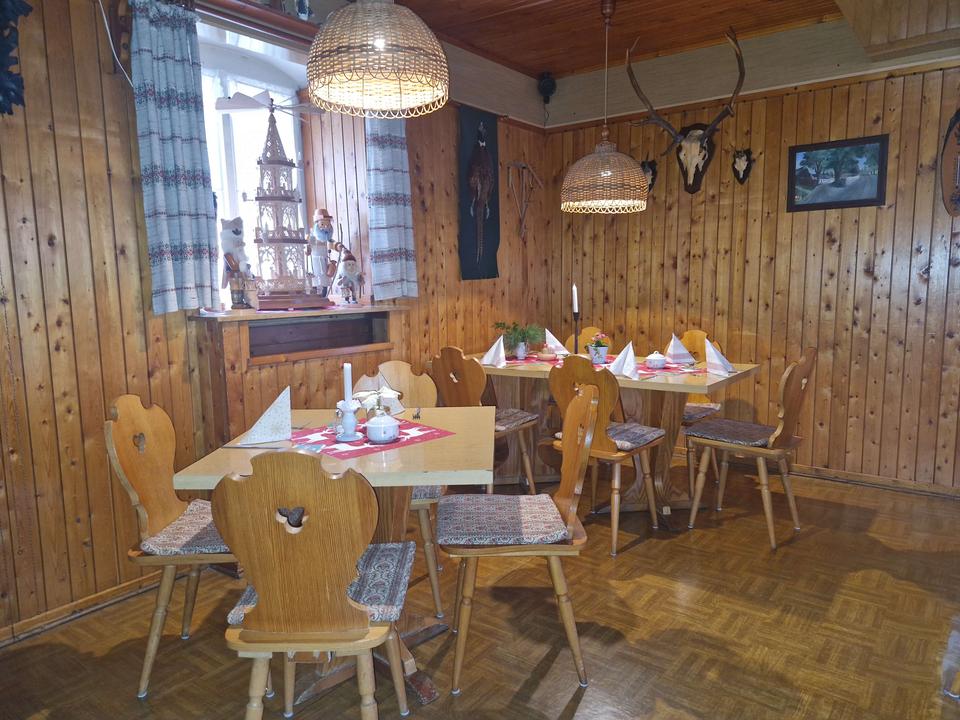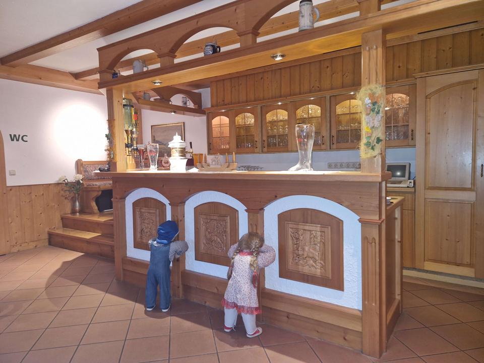 Im Neubau von 2005 erwarten Sie im Erdgeschoss eine Rezeption, eine gemütliche Gaststube, Gäste-WCs sowie eine Garage. Das Objekt ist nur teilweise unterkellert und verfügt über einen Waschraum mit Platz für Waschmaschine und Trockner.
