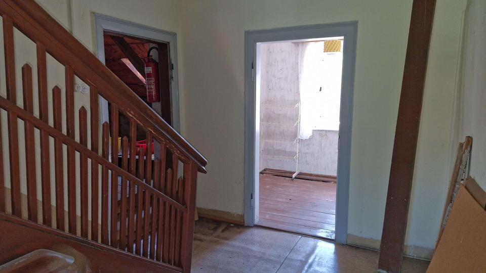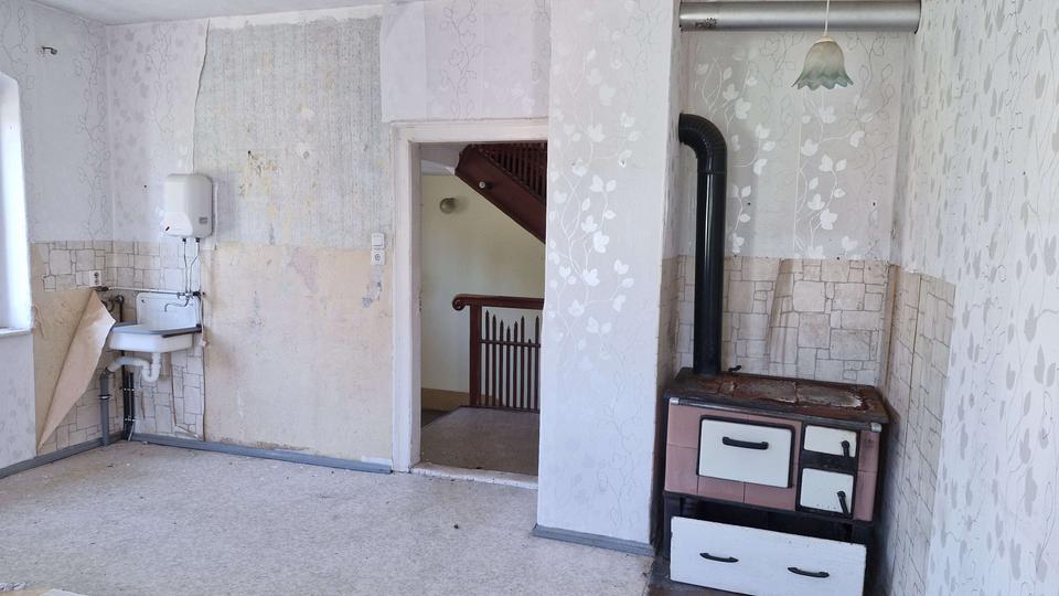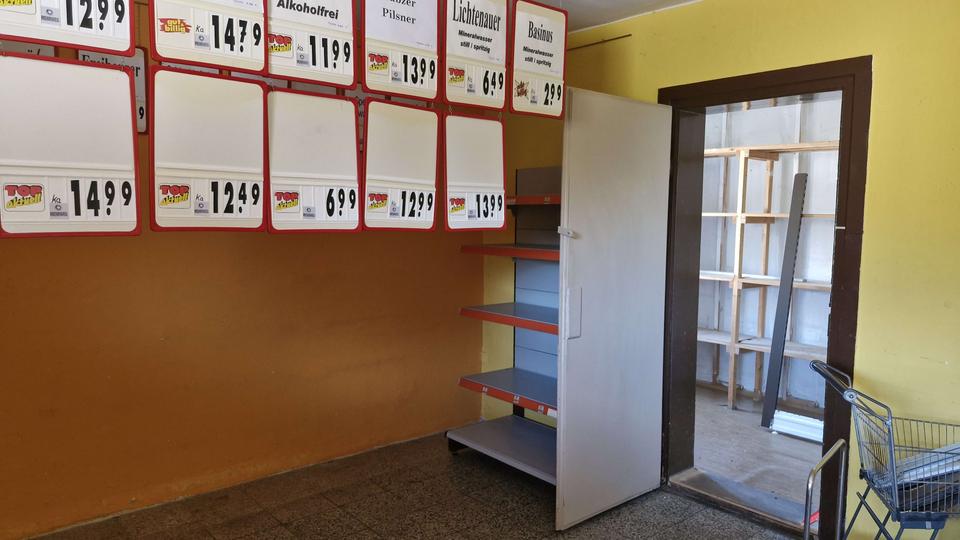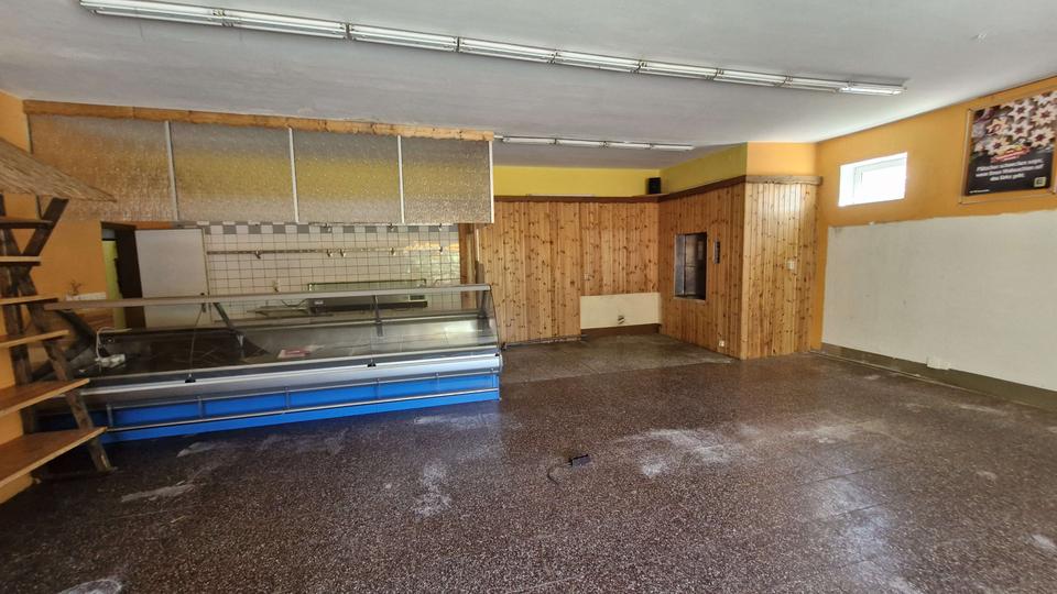 Über ein paar Treppenstufen betreten Sie das Gebäude und befinden sich im Flur des Erdgeschosses. Hier gab es bis vor ca. 4 Jahren einen Einkaufsmarkt. Diesem kann mit ein wenig Geschick wieder Leben eingehaucht werden, aber auch eine Umnutzung in Wohnraum wäre möglich. Auf der rechten Seite steht der ehemalige, große Verkaufsraum zur Verfügung und auf der linken Seite finden Sie einen separaten Eingang, welcher in einen Raum mit anschließendem Vorratslager führt. Des Weiteren befinden sich auf dieser Etage ein Lagerraum, ein ehemaliger Kühlraum und ein weiterer Zugang über das Hinterhaus.