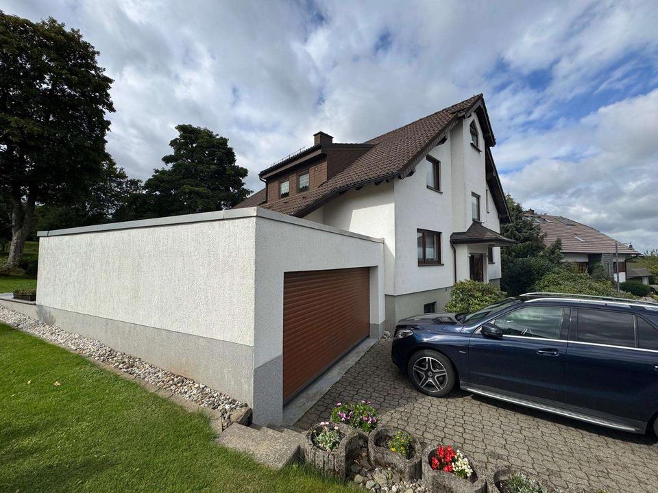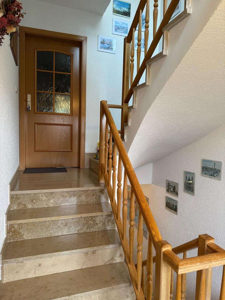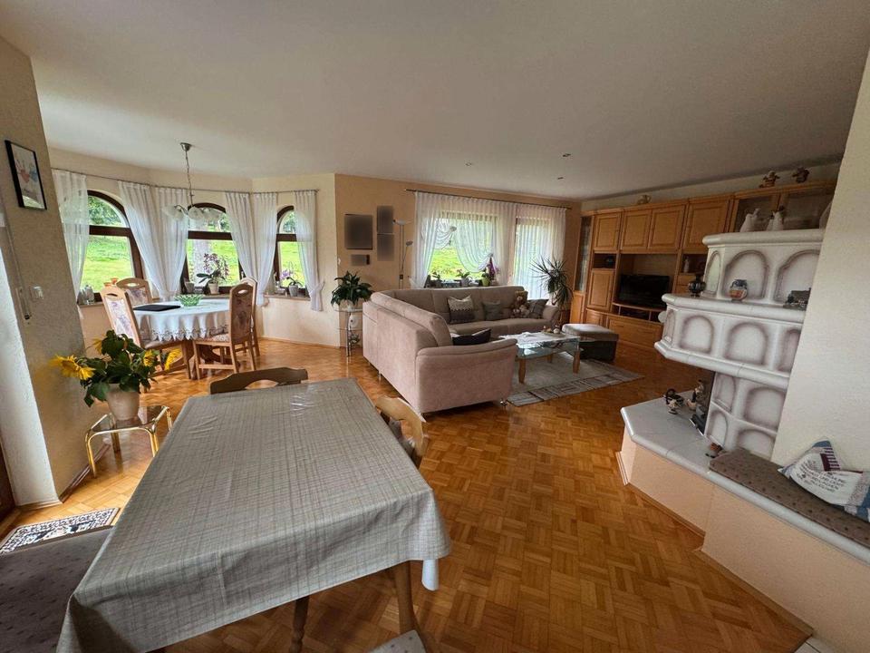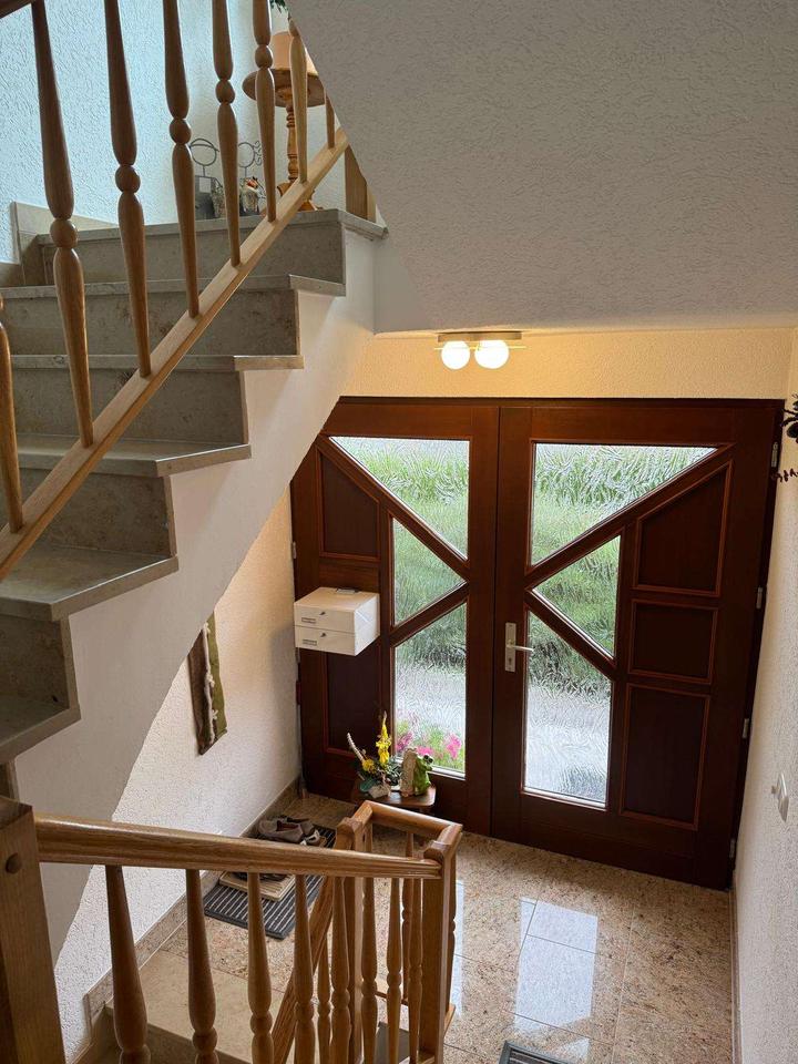 Dieses große Wohnhaus wurde 1995 in massiver Bauweise neu errichtet und ist voll unterkellert. Das Haus verfügt über zwei eigenständige Wohneinheiten, eine im Erdgeschoss und eine im ausgebauten Dachgeschoss, es lässt sich jedoch natürlich auch als ein zusammenhängendes Einfamilienhaus nutzen.