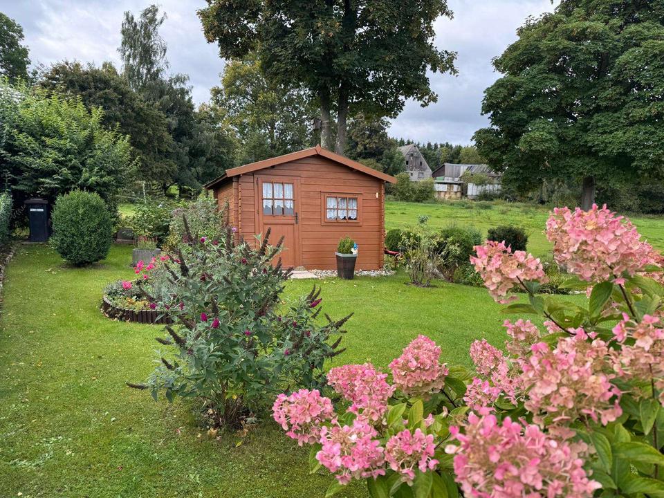 Der liebevoll angelegte Garten verfügt über eine große Rasenfläche und ist mit verschiedenen Büschen und Sträuchern bepflanzt. Ein kleiner Teich und die beiden Terrassen runden das Gesamtbild ab. Genießen Sie hier gemütliche Grillabende mit Freunden oder Familie. Auch für Ihre Kinder ist genügend Platz zum Spielen und Toben, Sandkasten, Rutsche und Fußballtor finden auch ein Fleckchen. Neben dem Haus befinden sich eine große Doppelgarage.