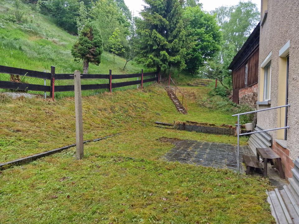 Zum Haus gehört ein ca. 1.100 m² großes Grundstück, welches allerdings Hanglage hat. Zum Grundstück gehört auch eine weitere separate Garage.